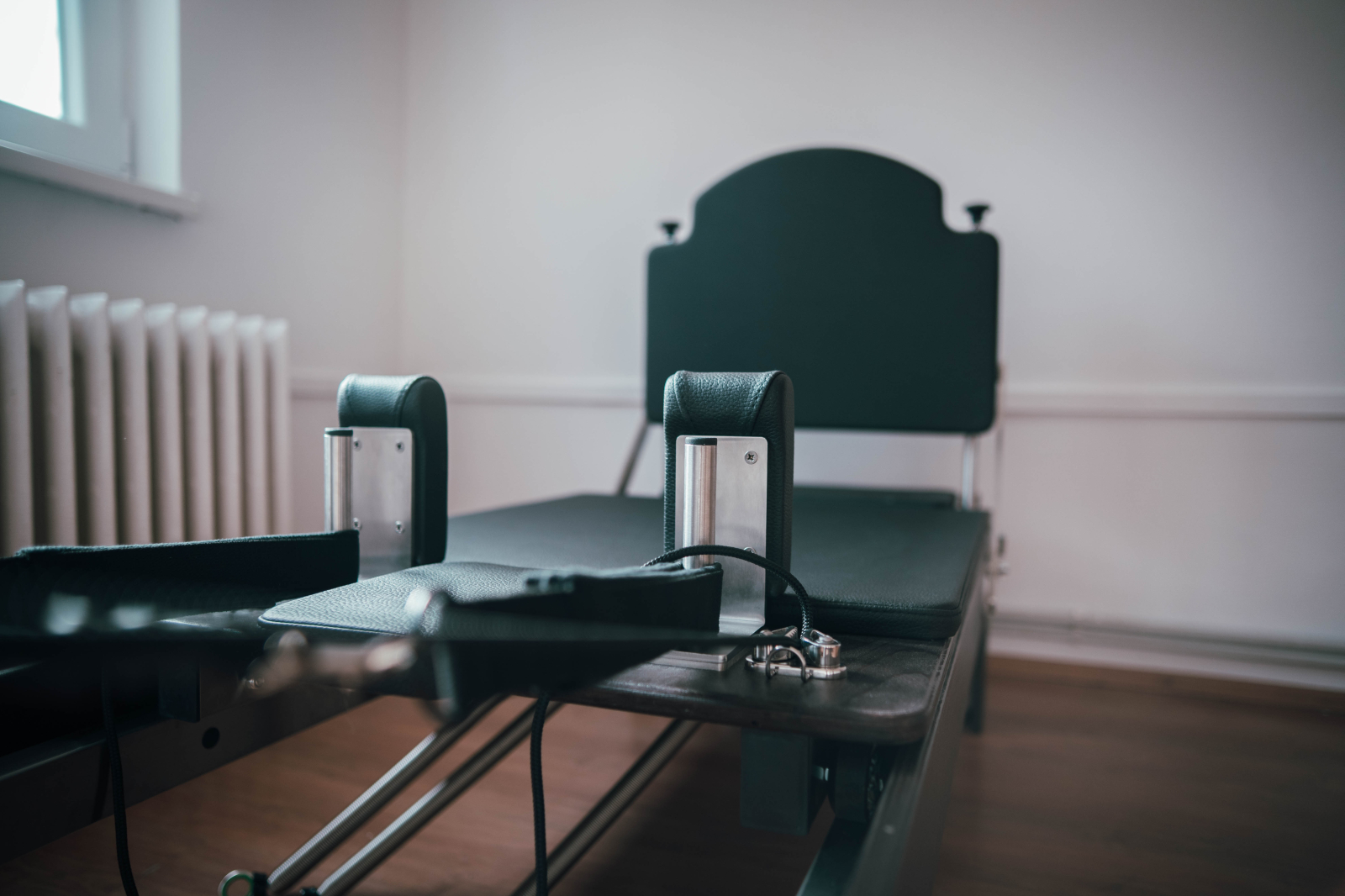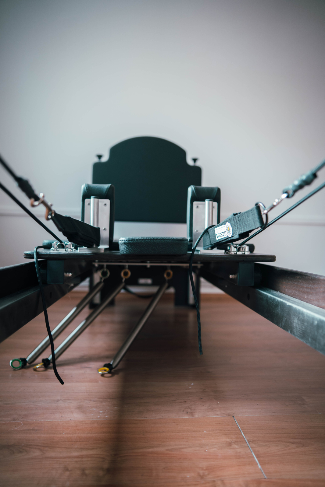 Aparatul tradițional Pilates Reformer: Un reformer Pilates clasic folosește un cărucior care rulează liber, situat de obicei pe un plan orizontal, fiind conectat la mai multe arcuri mari pentru a asigura rezistența.